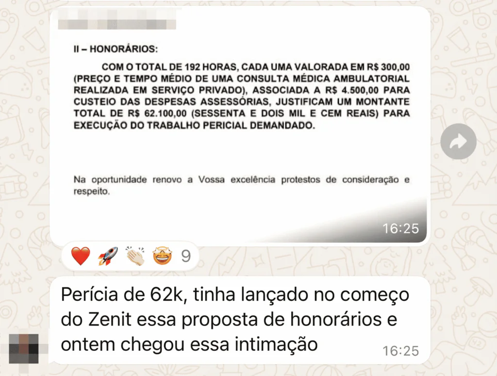 Perícias que antes pagavam R$ 3 a 5 mil agora chegam a R$ 15 a 30 mil. Assistências técnicas podem alcançar R$ 400 mil. Os honorários estão em outro patamar.